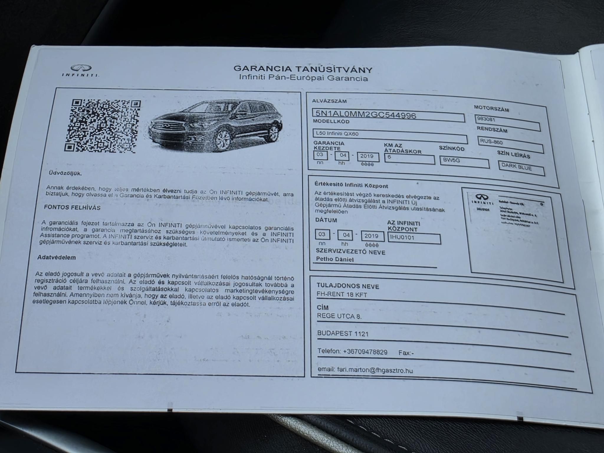 Magyarországon, a Gabliniban forgalomba helyezett különleges Infinity eladó, szakszerűen és folyamatosan karbantartott, sérülésmentes előélettel. Hatalmas utas- és csomagtér, 7 személyes kivitel, összkerékhajtással. A létező legmagasabb felszereltséggel (pl.: hűthető-fűthető bőrülések, BOSE hifi, panoráma napfénytető, elektromos memóriás ülésállítás, holttérfigyelő, 4 zónás klíma, bi-xenon fényszóró, 360 kamera, tolatószenzorok, kulcsnélküli beszállás és indítás,