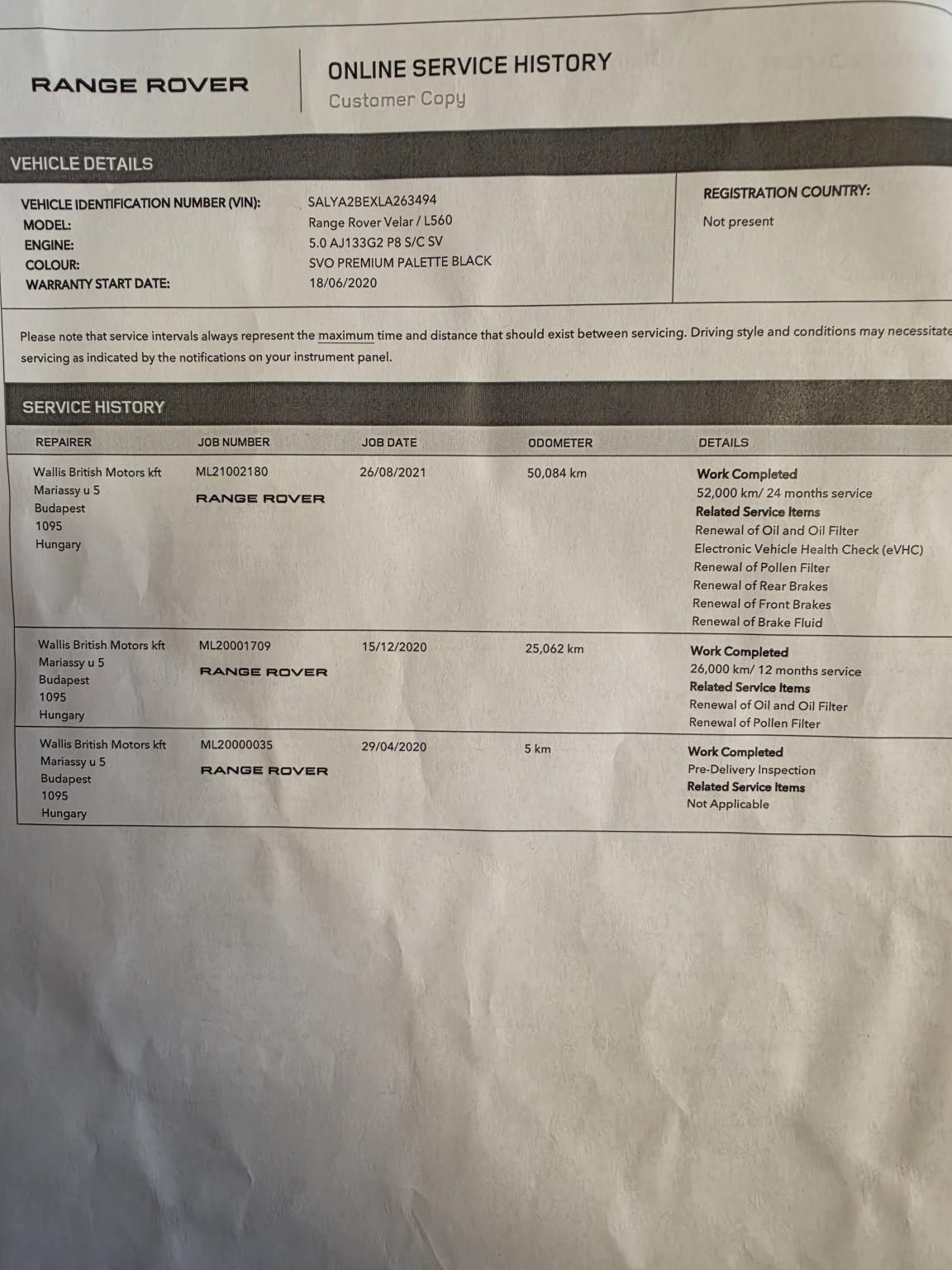 LAND ROVER RANGE ROVER VELAR RangeVelar 5.0 V8 SVAutobiography Dynamic (Automata) Magyarországi Full-Extra MATT PRÉMIUM SZÜRKE